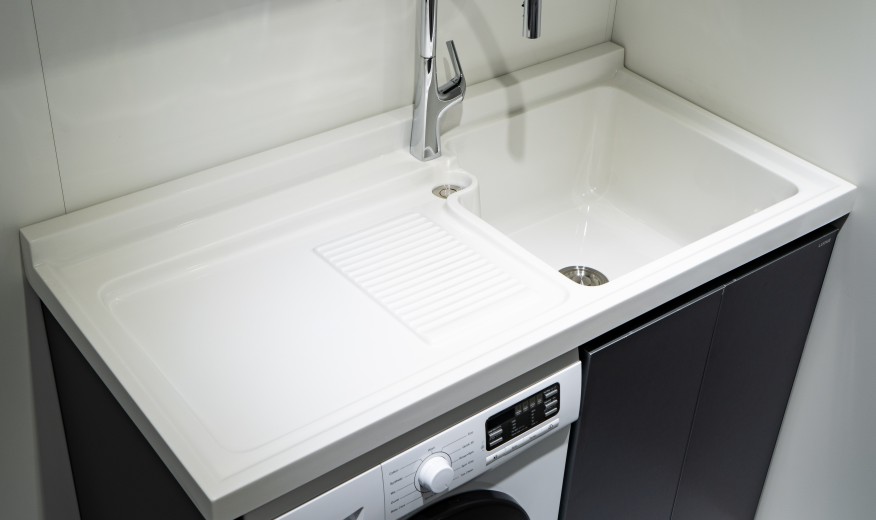 型号:8656-1200名称:石英石亮光一体盆平款洗衣柜主柜:1200x630x930mm 材质:铝合金样品颜色:砂灰+金属拉丝灰+枪灰细边框可选颜色:柜体:暖白色/砂灰色/卡其色面板:可选9种色板台面:石英石亮光一体盆(亮光白)