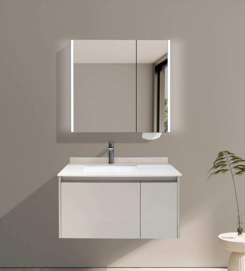 主柜:900×500×430mm镜柜:880×135×720mm 材质:免漆多层实木颜色:都市米灰台面:卡其灰岩板台面台下盆:1126配置:镜柜左右带灯备注:单价不含龙头及下水